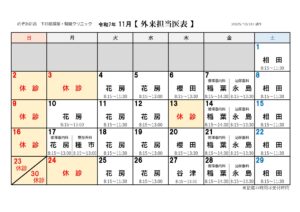 11月外来担当医表について